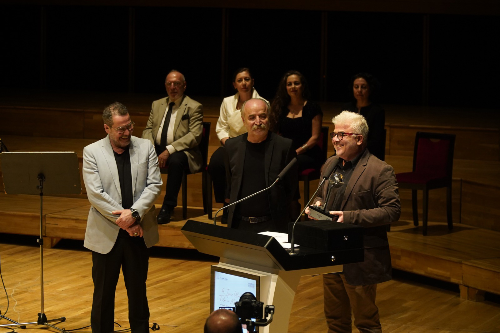 Directed by Vecdi Sayar, the festival's Lifetime Achievement Awards were given to film writer and historian Burçak Evren and producer/musician Mehmet Soyarslan. Honor Awards, previously presented to masters such as Yalçın Tura, Arif Erken, Cahit Berkay, Zülfü Livaneli, and Zuhal Olcay, were awarded this year to Mazlum Çimen, while the Intercultural Arts Achievement Award went to Greek cinematographer Andreas Sinanos, known for numerous co-productions in Turkey and Europe. Reis Çelik presented Çimen’s award, and Ercan Kesal gave Sinanos’s award.